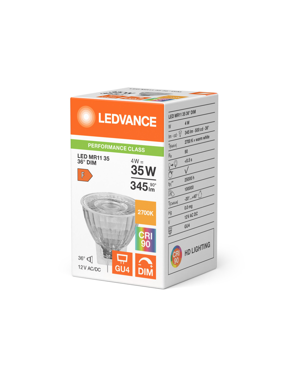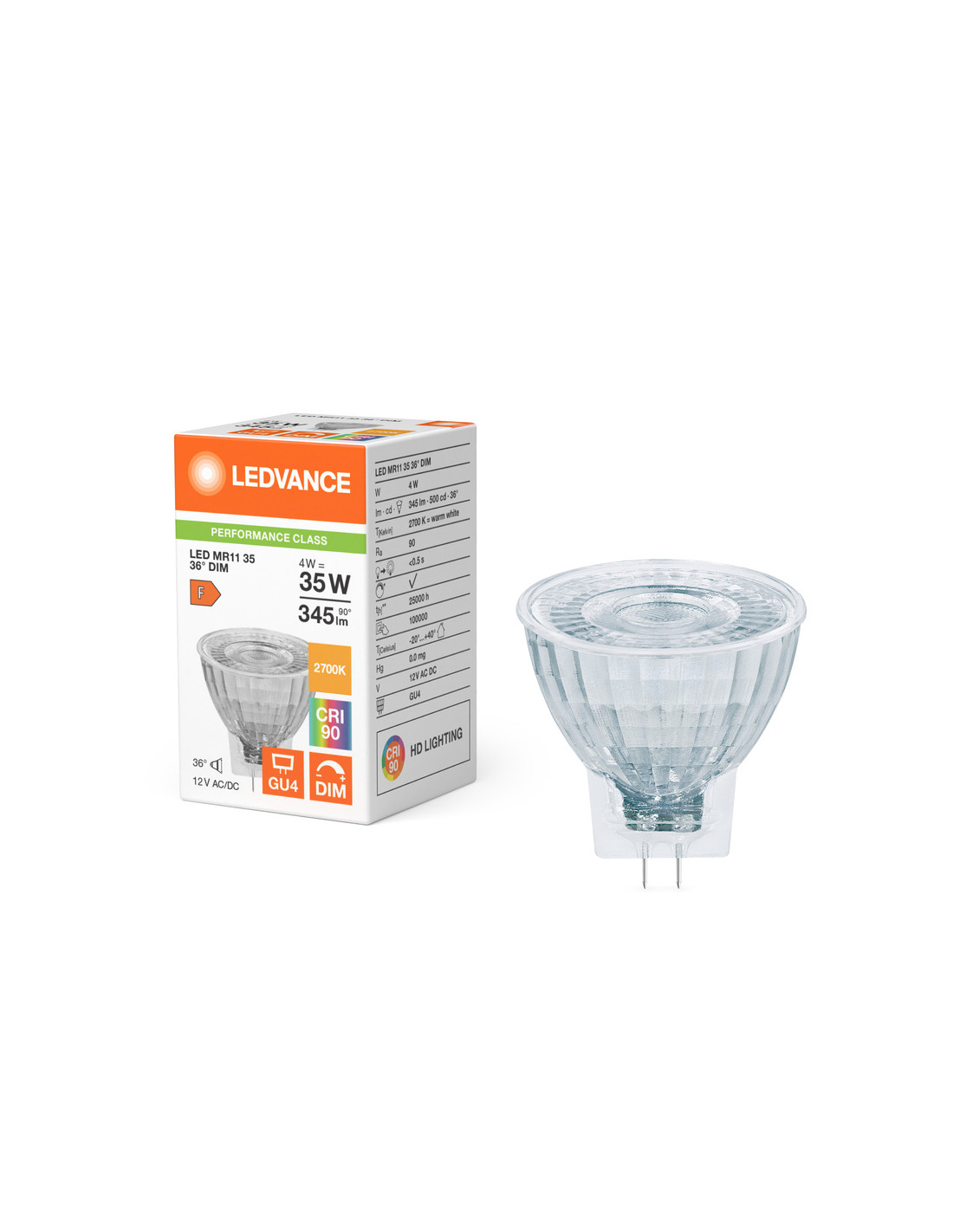 ŻARÓWKA LED P SPOT MR11 GL 35 36° DIM 4,5W 2700K ciepła biała CRI90 GU4 12V 345LM