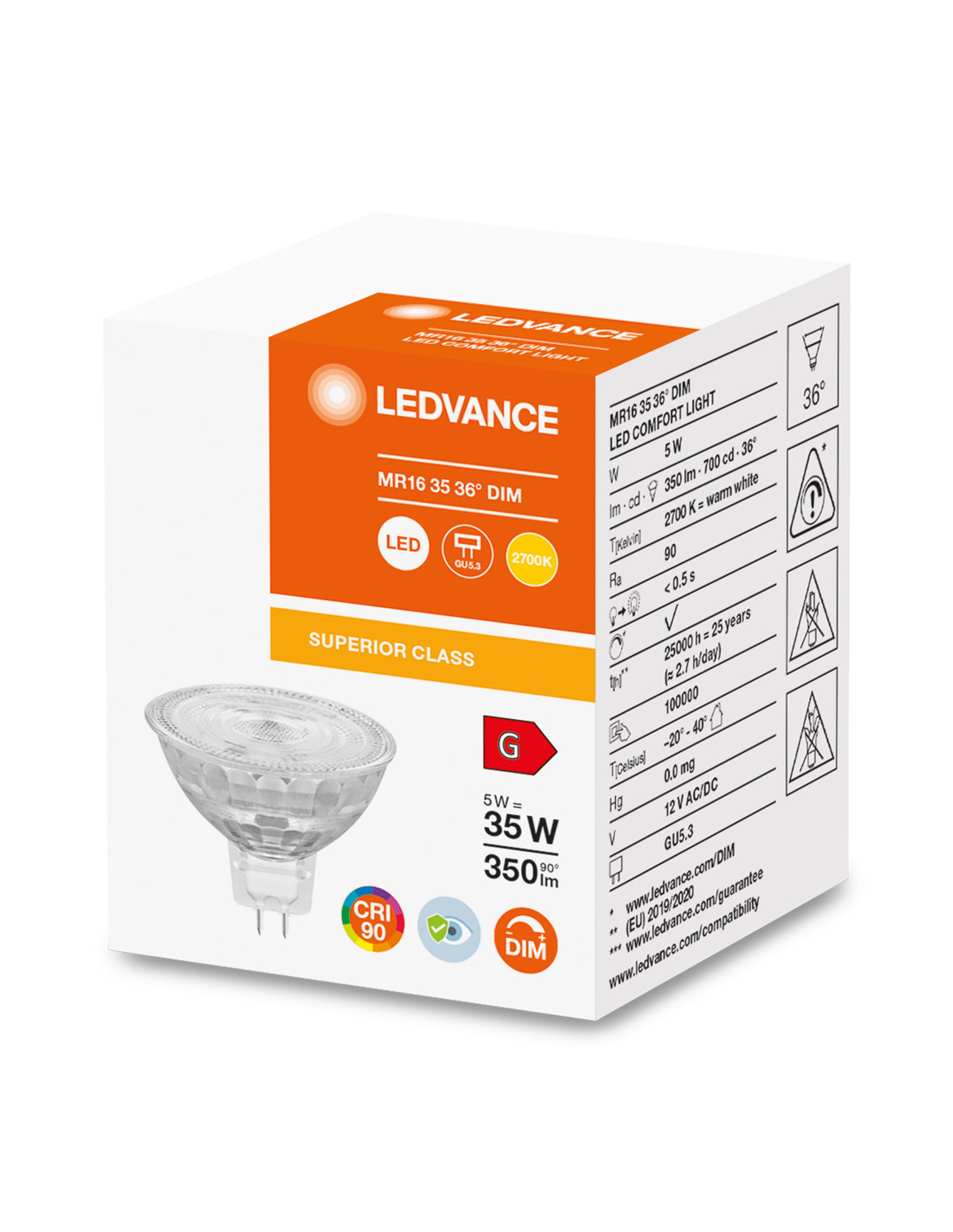 ŻARÓWKA LED COMFORT/SUPERIOR SPOT MR16 DIM 35 5W 2700K ciepła biała CRI90 GL GU5.3