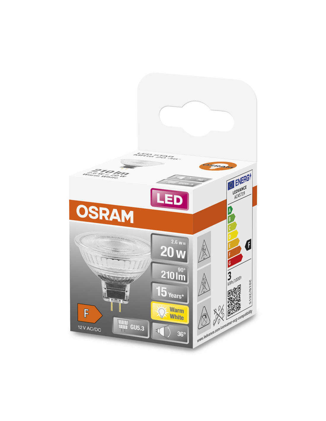 Cechy produktu: Zamiennik LED dla niskonapięciowych żarówek halogenowych. Lampy niezawierające rtęci. Zalety produktu: Niższe zużycie energii w porównaniu do lamp żarowych lub halogenowych. Łatwa wymiana żarówek halogenowych dzięki kompaktowej w pełni szklanej konstrukcji i pojedynczemu układowi optycznemu. Natychmiast 100 % światła, bez czasu nagrzewania. Idealne, ekonomiczne reflektory kierunkowe. Obszary zastosowań: Sklepy. Hotele. Muzea, galerie sztuki. Pomieszczenia mieszkalne. Jako światło wpuszczane do oznaczania przejść, drzwi, schodów itp.. Oświetlenie kierunkowe akcentujące. Szafki do ekspozycji i witryny sklepowe. Oświetlenie kierunkowe obiektów wrażliwych na ciepło, np. żywności roślin itp.. Do użytku na zewnątrz tylko w odpowiednich oprawach zewnętrznych. Porady dotyczące bezpieczeństwa: Nie dotykaj lampy, jeśli jest stłuczona.. Nie wolno używać, jeśli zewnętrzne źródło światła jest uszkodzone..