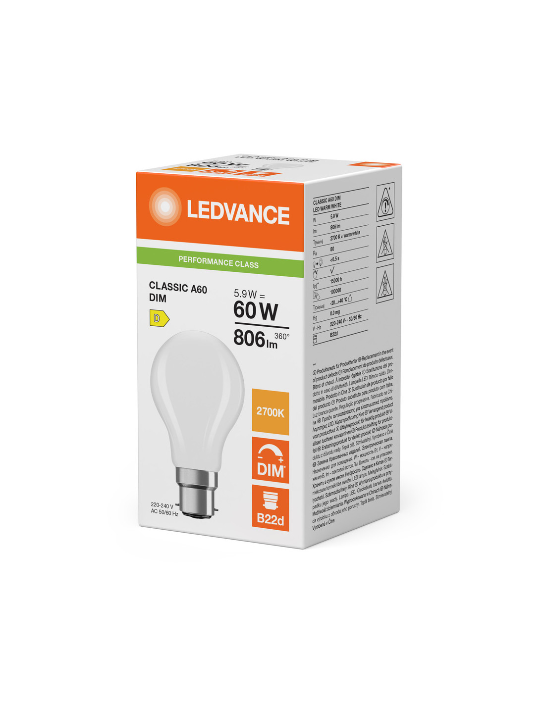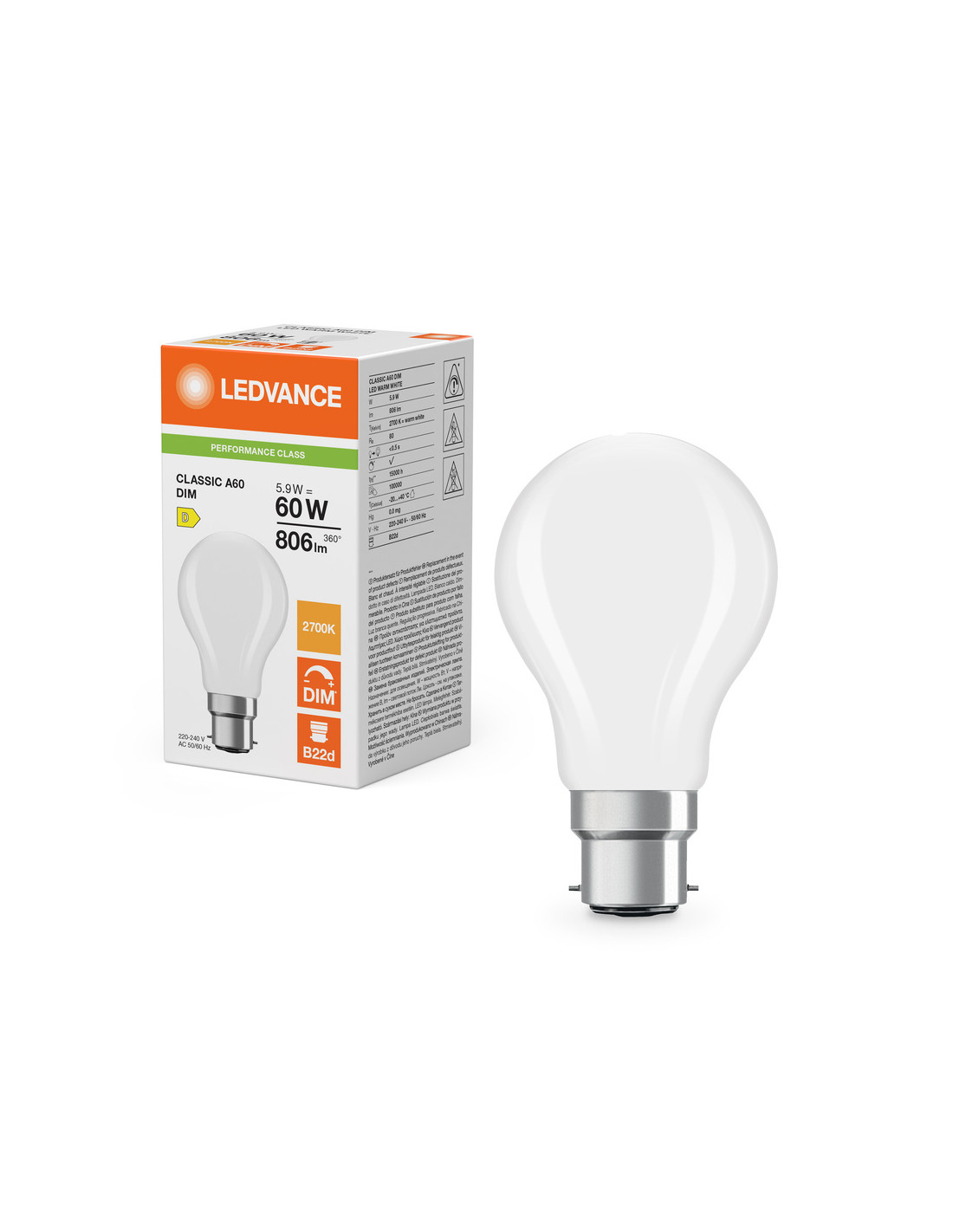 Cechy produktu: Profesjonalne lampy dla napięcia sieciowego. Kąt wiązki światła: do 300°. Ściemnialne. Trzonek: E27, B22d. Trwałość do 15 000 h. Lampa wykonana ze szkła. Dobra jakość światła, wskaźnik oddawania barw Ra: 80; stała chromatyczność. Zalety produktu: Wygląd, wymiary i strumień świetlny porównywalne z tradycyjnymi żarówkami lub żarówkami halogenowymi. Niższe zużycie energii w porównaniu do lamp żarowych lub halogenowych. Odporność na drgania. Brak promieniowania UV i podczerwonego w wiązce światła. Natychmiast 100 % światła, bez czasu nagrzewania. Łatwy montaż zamiast zwykłych żarówek. Obszary zastosowań: Doskonałe rozwiązanie do instalacji dekoracyjnych. Zastosowania domowe. Oświetlenie ogólne. Do użytku na zewnątrz tylko w odpowiednich oprawach zewnętrznych. Porady dotyczące bezpieczeństwa: Nie dotykaj lampy, jeśli jest stłuczona.. Nie wolno używać, jeśli zewnętrzne źródło światła jest uszkodzone..