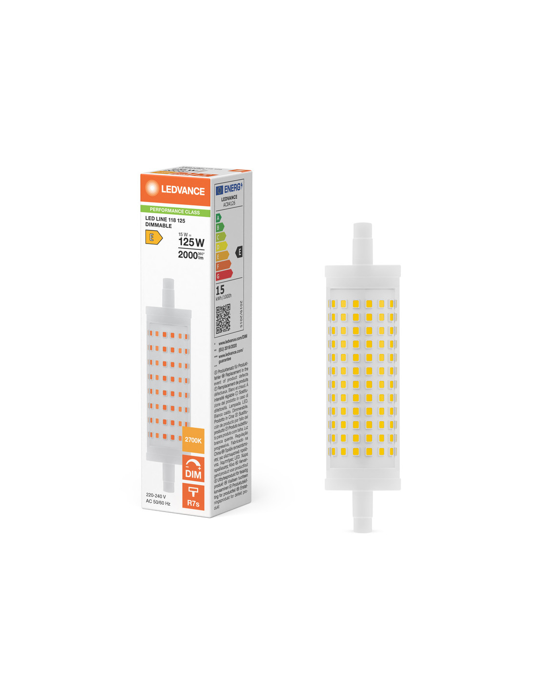 Cechy produktu: Ściemnialne (za pomocą licznych popularnych ściemniaczy, zobacz więcej www.ledvance.pl/dim). LED zamiennik żarówek z trzonkiem R7s. Dobra jakość światła, wskaźnik oddawania barw Ra: 80; stała chromatyczność. Zalety produktu: Dopasowane do większości opraw oświetleniowych R7 dzięki mimośrodowemu typowi trzonka. Równomierny rozsył światła we wszystkich kierunkach. Niskie obciążenie cieplne (w porównaniu ze standardowym produktem referencyjnym). 5-letnia gwarancja. Niższe zużycie energii w porównaniu do lamp żarowych lub halogenowych. Obszary zastosowań: Oświetlenie ogólne w miejscach o temperaturach otoczenia od -20 do +40 °C. Hotele. Zastosowania domowe. Do użytku na zewnątrz tylko w odpowiednich oprawach zewnętrznych. Porady dotyczące bezpieczeństwa: Nie dotykaj lampy, jeśli jest stłuczona.. Nie wolno używać, jeśli zewnętrzne źródło światła jest uszkodzone.. Aby zapewnić pełną wydajność oświetlenia i trwałość produktu, zalecane jest demontaż szyby lub osłony oprawy oświetleniowej..