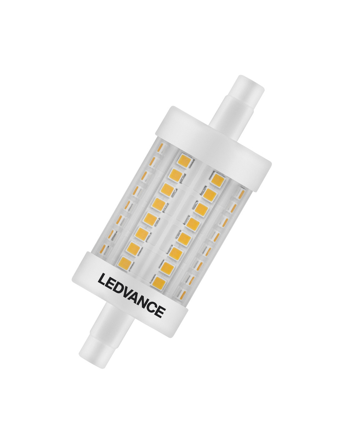 Cechy produktu: LED zamiennik żarówek z trzonkiem R7s. Dobra jakość światła, wskaźnik oddawania barw Ra: 80; stała chromatyczność. Zalety produktu: Dopasowane do większości opraw oświetleniowych R7 dzięki mimośrodowemu typowi trzonka. Równomierny rozsył światła we wszystkich kierunkach. Długa trwałość do 15 000 godzin. Niskie obciążenie cieplne (w porównaniu ze standardowym produktem referencyjnym). 4-letnia gwarancja. Niższe zużycie energii w porównaniu do lamp żarowych lub halogenowych. Obszary zastosowań: Oświetlenie ogólne w miejscach o temperaturach otoczenia od -20 do +40 °C. Hotele. Zastosowania domowe. Do użytku na zewnątrz tylko w odpowiednich oprawach zewnętrznych. Porady dotyczące bezpieczeństwa: Nie dotykaj lampy, jeśli jest stłuczona.. Nie wolno używać, jeśli zewnętrzne źródło światła jest uszkodzone.. Aby zapewnić pełną wydajność oświetlenia i trwałość produktu, zalecane jest demontaż szyby lub osłony oprawy oświetleniowej..